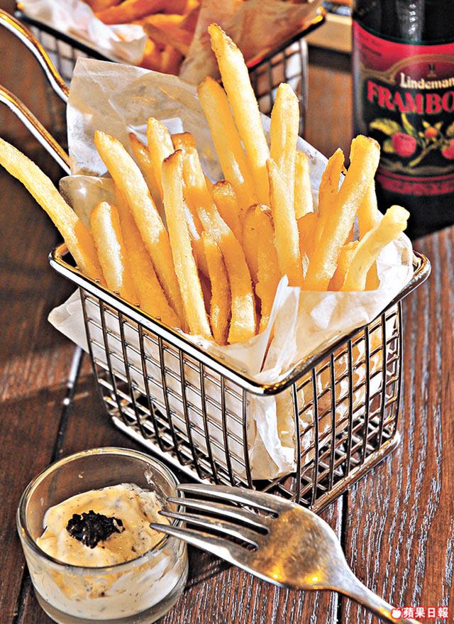 吃薯條沾茄汁,理所當然,今次吃得招積點,配矜貴黑松露!「BRAT」自家調製黑松露沙律醬,以蛋黃醬為基調,加入橄欖油、鹽及黑椒改善味道與口感,「我自認是黑松露殺手,任何有關黑松露的菜式都絕不放過,好味……」Jancy不顧儀態,把薯條沾滿黑松露醬,貪婪地一條又一條地往嘴裏送:「薯條炸得好脆,黑松露沙律醬好香,好好味……」一般薯條呈黃色,甜番薯薯條卻呈鮮艷奪目的橙色,由於帶天然甜味,這次不沾黑松露沙律醬,改沾用蛋黃醬、蒜粉及加仁里辣椒粉製成的辣醬,甜味與辣味在口腔內互相衝突,有的是驚喜!兩款薯條皆用小鐵兜上,賣相美觀,驟眼所見不乏捧場客,在附近工作的OL,最愛到這裏買點小食作下午茶。