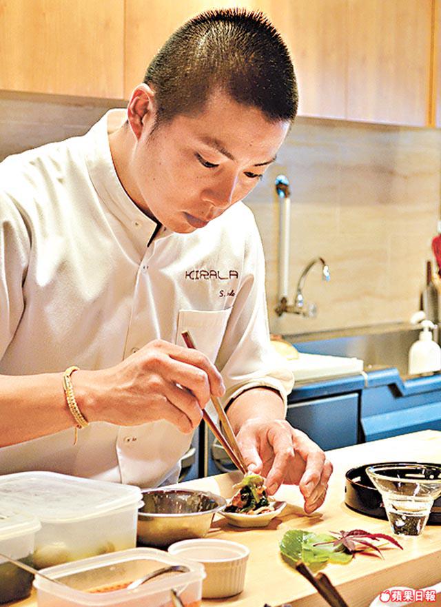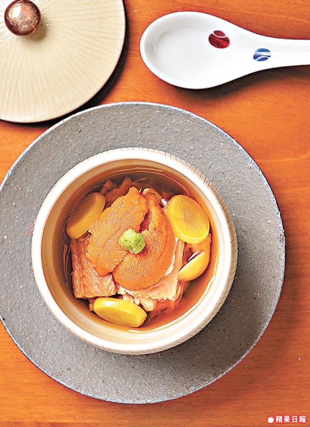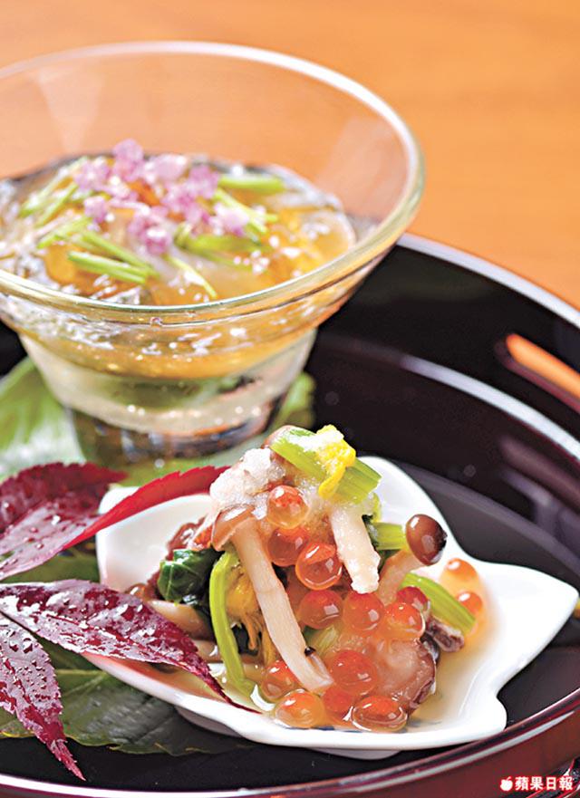 餐廳誠邀曾於京都著名懷石料理「吉兆」工作多年的安東伸一師傅坐鎮,於午市推出$480的平民化懷石料理套餐,與動輒過千的價錢相比,便宜一大截。便宜,不代表食材馬虎,師傅善用各地食材入饌,每月都會更換菜單。為自我增值,他更學習花道、茶道和書法,對每道菜的擺法和賣相都有嚴格要求,如前菜和風蠔伴土佐醋啫喱及和風野菌,菠菜及菇菌配微酸醋汁,上灑三文魚子,清新醒胃,肥美的廣島蠔則用清酒和木魚花湯煮至半生熟。「別小看這木魚花湯,用最優質的鹿兒島木魚熬製,我還特地從日本購入刨木魚花機,親手刨製,加北海道昆布一煲,非常入味。」那小杯啫喱混入煮好的蠔汁,入口香滑,上鋪紫蘇葉花穗,色香味俱全。