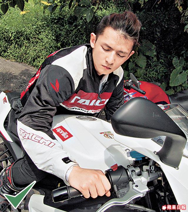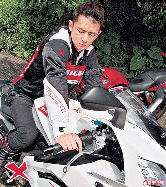 揸電單車要識得放鬆,放鬆身體自然會有動作配合。若然身體繃緊的話,重心點永遠只壓在座位上面,其實重心點必須放在一架車的最低處,即是腳踏,重心位越低,所需的轉向弧度越細。