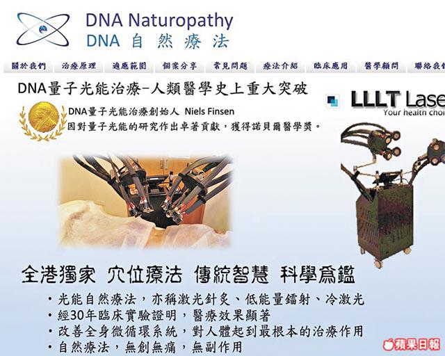 記者日前以顧客身份到佐敦西貢街昌華商業大廈一單位「DNA自然療法」,發現單位設備簡陋,只擺放兩張床及數個儀器。記者向職員表示小腿皮膚敏感痕癢,自稱診所醫師的周志凱即時介紹近紅外線療法,「細胞會吸收特定波長嘅光線,用近紅外線可以修復細胞,又可作刺激穴位,喺美國已經好盛行」,更指自己在大學已經開始研究激光療法,又曾到美國學習自然療法。