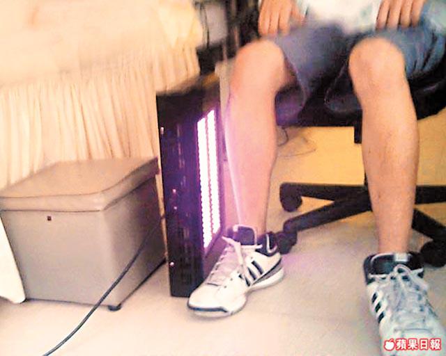 其後他開動一個有數十顆紅色燈的儀器放在記者腳側,照了五分鐘後,記者感覺皮膚灼熱。他稱單位內所有儀器均由美國製造,「每部儀器買返嚟都要成幾十萬蚊,有美國認證」,但記者發現有儀器外殼上,竟貼上寫有簡體字「LED紅光燈」的標籤貼紙,並未發現任何認證標籤。其間他更推銷家用版近紅外線儀器,指行動不便的人都可在家中治療,「美國賣呢部機要成幾千蚊,但我改良佢個設計之後,租一個禮拜都係百零二百蚊。」