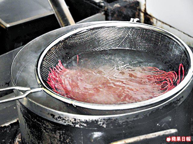 2. 煲滾水,加入扁麪條煮2分鐘至半熟,撈起備用。