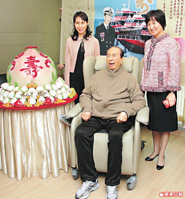 賭王看來精神奕奕,由二房揸fit人超瓊、超鳳陪伴坐在巨型壽桃旁,背後則有幾個信德員工拉banner,賭王笑住任影,員工和記者一齊唱生日歌,賭王聽到滿心歡喜。何超瓊說:「今日好多同事拎壽包、賀禮嚟,何生好高興,又好掛住你哋,想見吓啲記者朋友。」賭王看來思路清晰,他說:「我呢,願望係希望澳門繼續好生意!」問到他病況,賭王說:「醫生話我攰,要休息。」問到可有好轉?他說:「家好咗啦,照計都好啦!」更和一眾記者合照留念,其間何超瓊向記者派利是,心情甚好,但就沒回應十姑娘追數一事。二房何猷龍夫婦、何超蕸等下午都有到醫院探望。四房晚上出動賀壽,七時多超盈帶住猷君、超欣到達,超盈男友則買了SEVVA蛋糕,四房更將之前準備生日會的紀念杯,盛滿參蜜及湯丸慰勞記者。