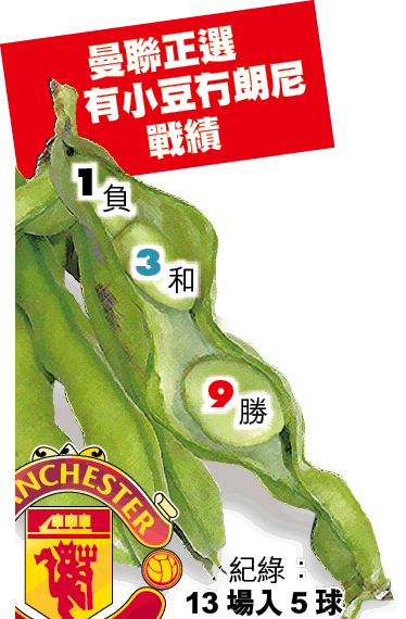 曼聯在上季曾經歷朗尼「扭計」兼出外靜養的時期,小豆成功肩負起球隊的進攻重任。上季至今共出現了13場正選名單上只有小豆沒有朗尼的情況,結果曼聯取得9勝3和1負的成績,小豆共貢獻5球。而當中唯一敗仗亦僅是重視程度不大的聯賽盃賽事。