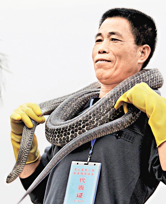 昨日,該縣12個持證養蛇場參加了滑鼠蛇、眼鏡蛇的角逐。新華社
