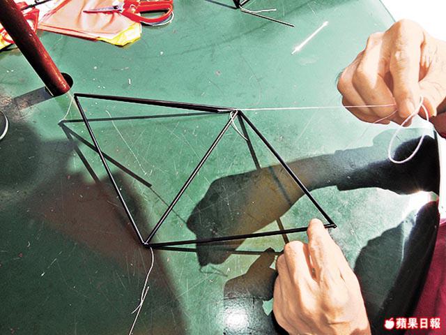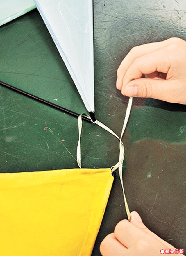 答: 穿飲管時,棉線不能綁得太緊或太鬆,對風箏的平衡十分重要。