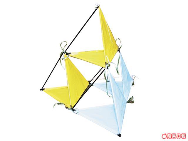 答: 因為材料夠輕身,加上面料方向一致,令立體三角留有通風道,風在沒阻力下穿過風箏,將之承起。