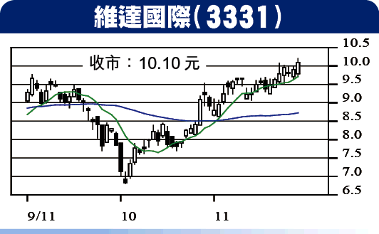 維達國際(3331)上半年盈利受原材料木漿價格大升影響,但近期原材料降價,相信下半年業績可改善。集團近日宣佈計劃通過收購地區性品牌,拓展衞生巾業務,並承租新會廠房擴充產能,前景可看好。股價過去兩個月逆市造好,上周五更創一年新高,有望挑戰歷史高位11元水平,建議10元買入,目標11元,跌穿9.50元止蝕。