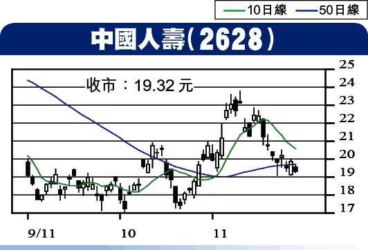 中國人壽(2628)近日由高位23.80元回落,一度低見19.10元水平,主要是受到大市偏軟拖累。不過,預期新主席會銳意改善分銷渠道及推動新業務,未來整體前景料有改善。國壽現價約為1.3倍的2012年內函值,及5.4倍的新業務價值,屬合理水平。股價已跌返保歷加通道底部,理論上開始見底,可在19元買入,上望25元,17.20元止蝕。