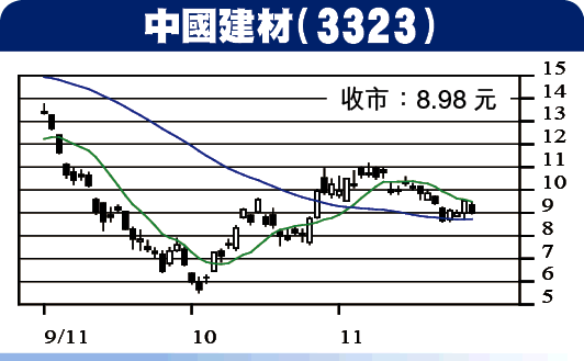 中國建材(3323)為內地水泥業龍頭之一,今年首3季營業額增長七成至接近560億元人民幣,純利增2.76倍至59.82億元人民幣,反映集團受惠於水泥需求季節性復蘇。市場憧憬內地逐步放水,加速基建步伐,有利穩定水泥價格,利好集團前景。相信未來可繼續透過併購加速擴張。建議8.50元附近買入,目標11元,7.60元止蝕。