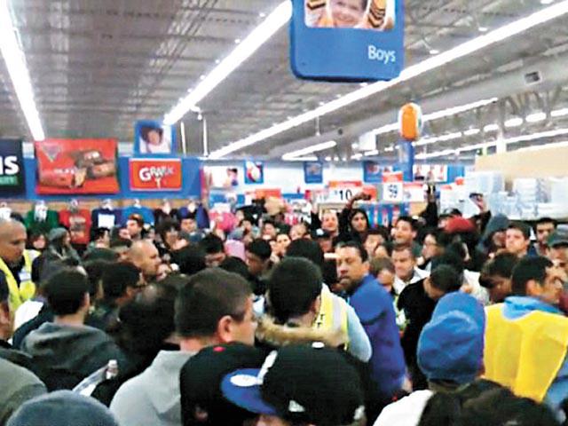 在密歇根州,一名少女與其他人鬥快跑往沃爾瑪電子產品部時遭推倒掉地,其他人見狀不理會,還踩着她的身體而過,幸好她只受了輕傷。在紐約市連鎖成衣店Hollister未開門,憤怒的群眾竟打爛店門,衝入店內四處搶掠。