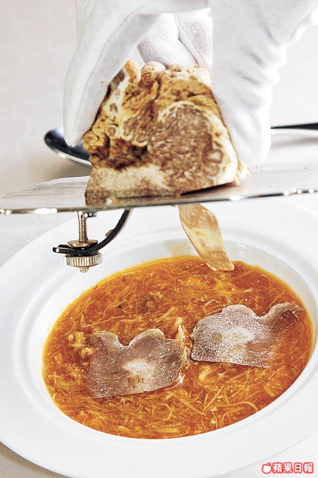 拍賣會當晚,港島廳同時供應6道Alba白松露菌菜式,除傳統意大利菜,還將白松露菌混入粵菜及日本懷石料理中,全部由星級名廚主理。詹康信說:「當晚菜式非常特別,原來白松露菌與日本菜及中菜非常匹配。這是我首次以非意大利菜或法國菜方式品嚐松露,是一個非常好的經驗。」他特別喜歡白松露配和牛及大閘蟹。