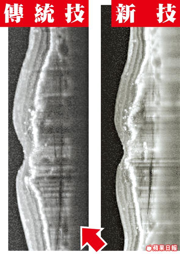 港大眼科研究所臨床助理教授王逸軒表示,俗稱「眼底檢查」的斷層造影技術,由眼球前方拍攝,傳統技術只可拍到視網膜的影像,脈絡膜的影像卻模糊不清。新引入的「深層光相干性斷層造影」技術,跟傳統技術使用同一款機器,但卻可透過調校電腦程式,提升影像清晰度,連脈絡膜影像都清楚反映。