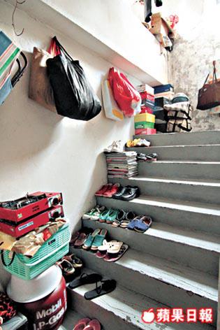 不過,部份樓梯已被部份業主佔用,用來放鞋、掛衫、擺麻雀枱,甚至連石油氣爐及石油氣罐都擺在這個公用地方,完全違反消防條例。
