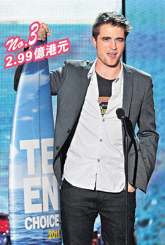 電影《吸血新世紀》系列的25歲男星羅拔柏迪臣,今年走勢強勁,他憑2,491萬英鎊(約2.99億港元)財產由去年的第5位跳上第3位,令《哈》片女主角21歲的愛瑪屈臣及「榮恩」23歲的路柏格連特(RupertGrint)齊齊下跌一級,分別排第4及第5名。