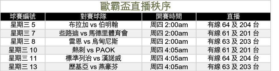 H組布拉加主場迎戰伯明翰,布拉加接連於本土大戰不敵士砵亭與波圖,今仗主場出擊可望反彈取勝。B組標準列治近況奇勇,以4連勝強勢迎戰近況平平的漢諾威,主W同樣值博。歷基亞雖然主場7連勝,惟今晚在C組迎戰榜首兼近期入球停不了的燕豪芬,客W反值博。