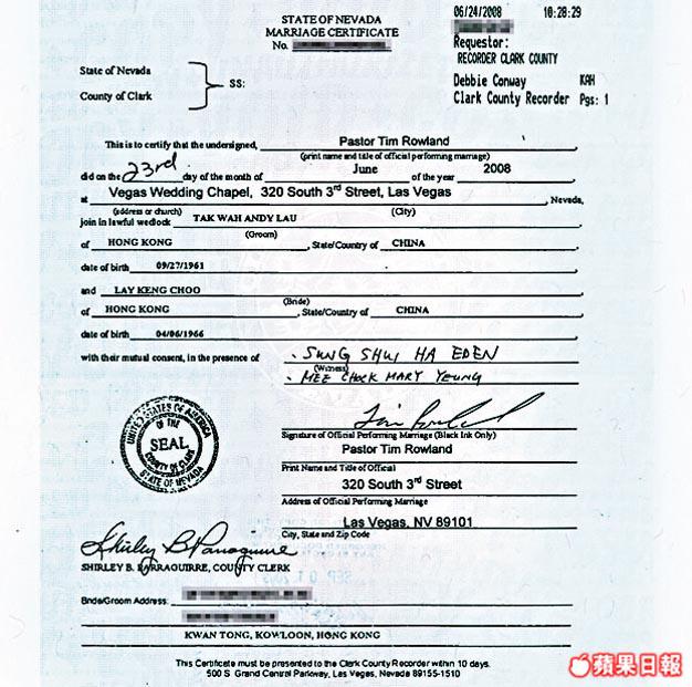 本報獨家揭發華仔與朱麗倩於08年6月23日在賭城拉斯維加斯註冊,華仔因在此前曾在節目否認已婚,最終被封為「大話天王」。
