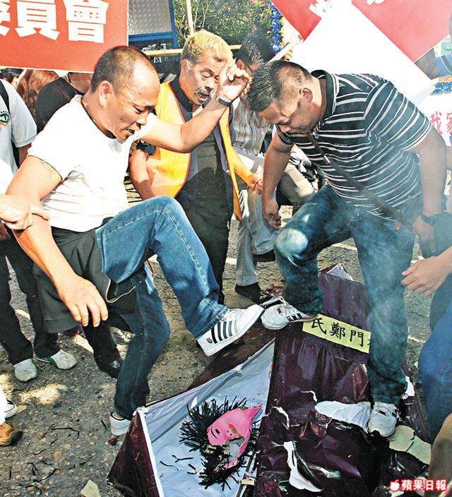 活動由法師帶領下焚燒村民自製的「林門鄭氏」紙棺材及紙紮林太,部份村民情緒激動,將紙紮公仔的頭部打斷,又將公仔拳打腳踢洩憤,才拿去焚燒。屏山鄉鄉委會主席曾樹和更高呼:「邊個拆我哋嘅屋,我就要佢血債血償。」十八鄉鄉委會主席梁福元稱,政府今次單方面執行清拆行動,無視新界原居民權益,令人憤怒,又指鄉議局主席劉皇發態度軟弱,要求與鄉議局開會商討解決辦法。