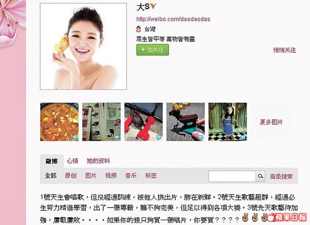 舒淇微博支持馬英九