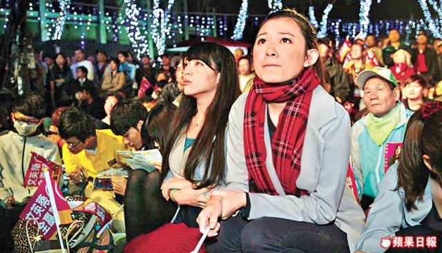 昨日下午4時投票結束後,過萬名支持者湧到蔡嘉全國競選總部外,緊盯大電視看開票。看着蔡英文的得票由開票早期的緊咬馬英九,變成被拉開落後逾70萬票,在場民眾心情沉重。