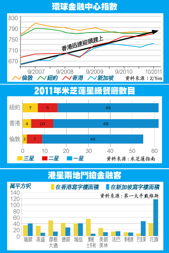 新加坡政府近年大力支持金融業發展,積極吸納人才及大量增加寫字樓供應,令香港很多投資銀行的中台、後勤部門職位已不斷流失至新加坡,全球十一大投行中,已有五間在新加坡的寫字樓面積比香港大,情況令人憂慮。