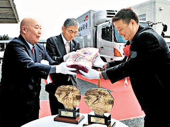 在兵庫縣加古川市,前日首次進行向海外出口神戶牛肉的儀式,第一批出口的神戶牛肉昨空運往澳門。但馬地區居民指,日本一直擔心出口神戶牛造成牛肉品質下降,或出現假冒牛肉,所以一直限制出口。如今門戶大開,對外開放,神戶牛肉面向世界。日本《每日新聞》/《讀賣新聞》