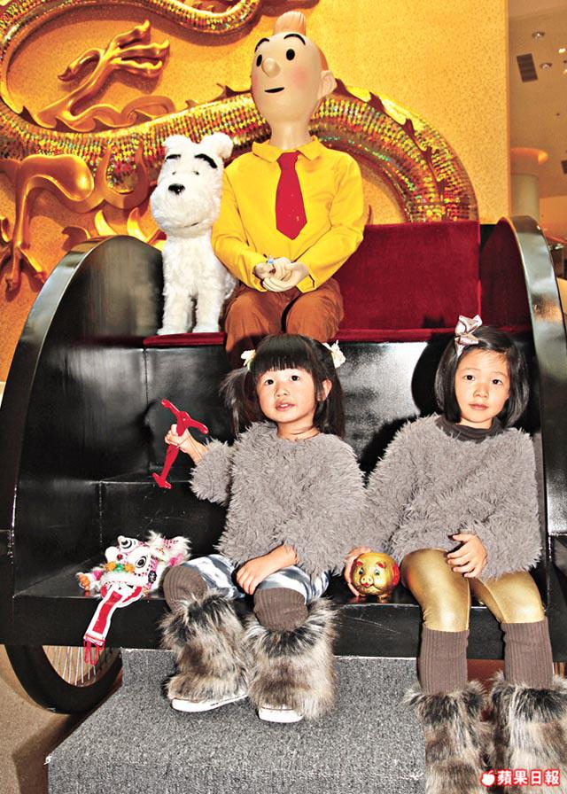 本地時裝設計師何志恩與日裔夫婿打本雄輝、兩名女兒Natasha及Katrina今年新年留港度歲,休息一番。早前她為商場設計比利時傳奇卡通人物TinTin的中國新年服,更與兩位活潑小TinTin玩樂。