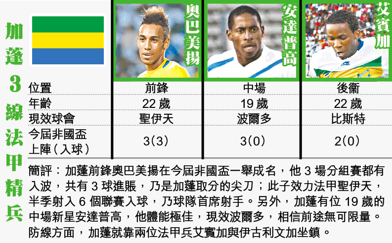 周日續有非國盃8強戰上演,其中主辦國之一加蓬的表現令人眼前一亮,迎戰演出麻麻的馬里,有力贏波奪4強入場券,捧主W。(球賽編號:星期日26;now676台今日11:59pm直播)青蛙仔