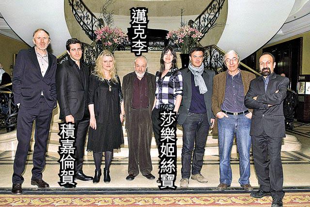昨日除見到工作人員正最後努力為影展做好準備鋪好紅地毯外,以英國導演邁克李(MikeLeigh)為首的評審團,亦連同康城影后莎樂姬絲寶(CharlotteGainsbourg)及《斷背山》(BrokebackMountain)男星積嘉倫賀(JakeGyllenhaal)等其他評審以盛裝會見傳媒。
