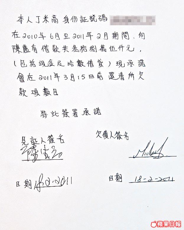 丁去年2月18日簽下借據,承諾3月15日還錢,但最終沒有兌現,被告於3月16日到廉署舉報。保安公司經理證實,丁去年1月曾提議升被告,惟當時沒空缺。
