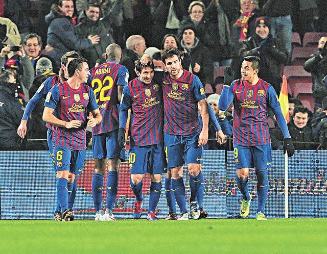 西盃4強次回合,法比加斯(右二)狀態回勇,先在上半場建功,換邊後再助攻沙維擴大比數,最終助巴塞隆拿主場以2:0擊敗華倫西亞,兩回合贏3:1晉級決賽,對手將會是畢爾包。法新社