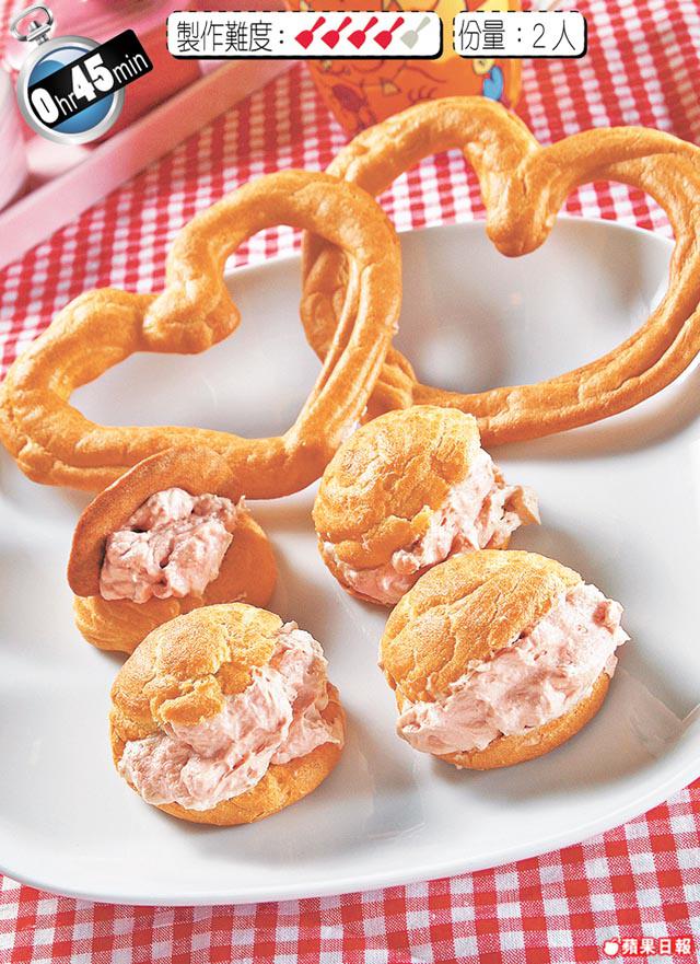 鵝肝醬餡:鵝肝醬65克、蜜糖8克、淡忌廉(打起)50克