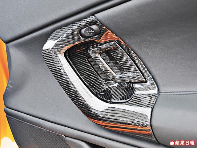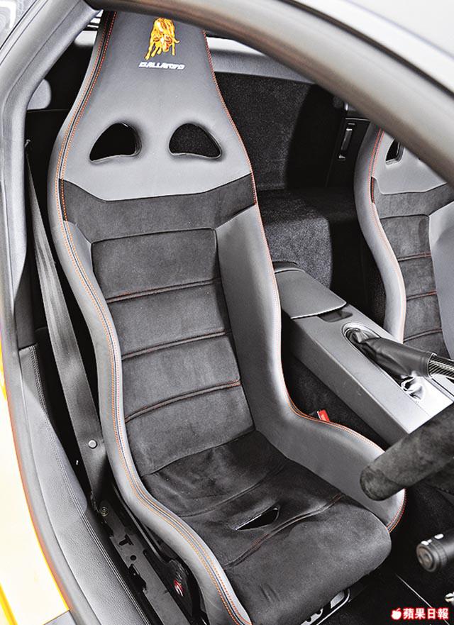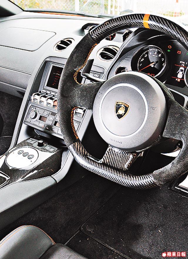 儘管廠方為LP550-2作一系列賽車化設定,但在香港爛路處處,足以震得讓五臟六腑混在一起,車主因此更換一套更適合道路使用的KWHLSV3避震,避震更設有升降功能讓車頭駛過停車場的減速欄,以免刮底。一張承托力足的賽車椅,亦可減輕車震不適。每張價值3.6萬元、可以一手托起的Tecnocraft碳纖座椅看似單薄,但乘坐感更舒適,且可裝置6點式安全帶,提升安全。內櫳改動,只是將整個中控台、門柄、軚盤更換成碳纖物料,好睇又有用。全車合共減磅50公斤,車身輕了,對制動及引擎的負荷相繼減輕,過彎時較穩定。玩超跑又點少得個性化設計?這台車出廠時已追加玻璃引擎蓋、在時速180公里自動升起的尾翼及後視鏡頭外,車主更「低調」地將車身的橙色換成橙×黑色的TwoTone設計,以代替無法更換碳纖車頂的遺憾。