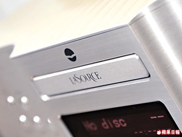 睇見唱盤部份與兩側按鍵形成凸出之勢,原來別出心裁。據影音專家阿Ken話,呢條疑似「S」形嘅線條,喺法國係代表Lucky,亦即「幸運」嘅意思,屬於一種祝福;若然唔熟悉法國文化又去擁有LASOURCE,嚴重程度相當於不尊重呢名法國女友。當然,令到發燒友如此心跳加速,呢個SACD/CD唱盤一定魅力不凡。唔講又唔知,佢其實用咗知名日本品牌Esoteric嘅頂級轉盤VRDS-NEO/VMK5,呢款轉盤係Esoteric對外銷售嘅最高級型號,特別針對SACD而設,可以喺SACD高速旋轉下確保光碟穩定性,大幅降低旋轉噪音,提升音色還原度。而佢唯一缺點,在於一個「貴」字,幾十萬一部Player,自問就高攀不起了。