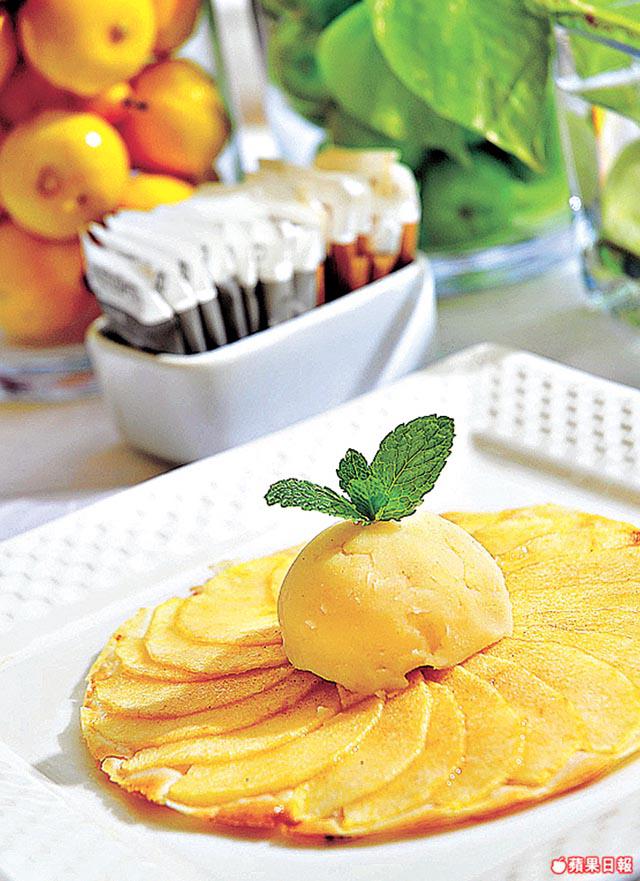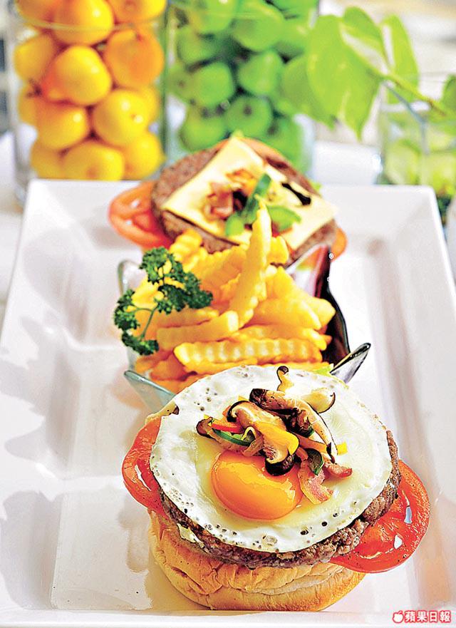 經過洪聖爺灣的遊人,都會被浪濤軒PalmTreePigeon&SeafoodCafe舒適的環境所吸引,進來喝喝咖啡聊聊天,就算不是住客,也可以在這裏偷閒半日。好心情特別令人想起甜品,推介蘋果撻配呍呢拿雪糕,顏色淡淡,但味道又香又甜。大廚RaymondTing說是法式做法,將蘋果切成薄片,放上四至五層薄片酥皮(俗稱filo紙)焗,當呍呢拿雪糕微溶時,略混上蘋果撻,味道又甜又香。除了甜品,安格斯漢堡也是這間Cafe招牌菜之一,漢堡份量十足,有兩件安格斯免治漢堡扒、太陽蛋、煙肉、洋葱、鮮菌等。