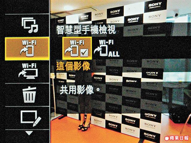 除指定照片,你仲可一次過揀多張相掟落Wi-Fi裝置,需時幾耐,就要視乎Wi-Fi訊號強弱。試玩當日,我哋就以手機、平板以及電視作示範;三類裝置之中,LCD-TV過相速度較慢,但如果你屋企用緊Bravia系列,佢就提供多一項幻燈片播放模式,畀你一邊睇靚相、一邊播放背景音樂,好正!至於過相最快算係手機裝置,唔止支援AndroidOS,單撈專用App之後,連iPhone亦可變成隨身電子相簿,好方便。
