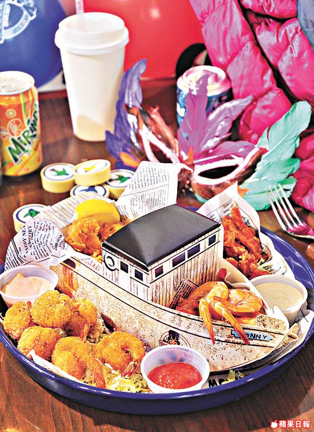 為小朋友特設的生日菜式全部以紙船盛載,這隻小船其實是由電影中,阿甘以太太命名的Jenny'sboat化身而成!每隻小船都有薯條和啫喱,配上小朋友最愛的漢堡包、炸魚薯條及炸雞塊等,還有餐廳的招牌菜「甘」香炸爆穀蝦,外脆內嫩,加上源源不絕的汽水,絕對是小朋友的美食天堂!而最讓小朋友興奮的,就肯定是自製雪糕新地環節!小朋友可在雪糕球上任意放上巧克力豆、彩針和灑上醬汁,有得食又有得玩!壓軸的生日蛋糕更會由餐廳的團隊列隊捧着出場,並合唱餐廳獨有的生日歌,小主角的這個生日肯定好快樂!