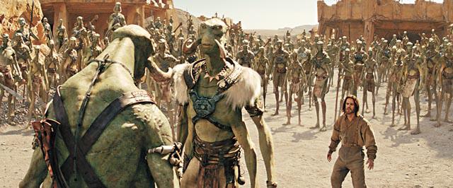 來到異星的尊卡特由於引力不同,發現自己變得身輕如燕兼力大無窮,他更遇上薩克族的大王塔斯達賈士(威廉狄福WillemDafoe飾),並無意間拯救了為救國家被迫要與蘇丹加族國王結婚的狄珍霍維絲公主(蓮歌蓮絲LynnCollins飾)。二人其後更發現了神秘族人瑟恩族的神廟,逐步揭開其滅星陰謀,擁有特異技能的尊卡特被迫要參與這個與自己無關的異星大混戰。