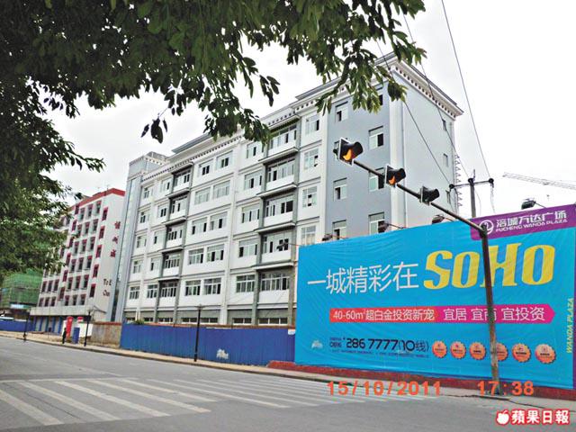 但有讀者提供攝於2011年10月的照片,相中的綿陽紫荊民族中學已被發展商「綿陽涪城萬達廣場有限公司」的廣告圍板封鎖。廣告指將會打造全新SOHO地帶,集商業及住宅於一身;網頁資料顯示萬達廣場去年已賣樓花,明年中入伙,樓價為每平方米6,200元人民幣。