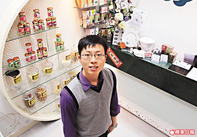 【本報訊】他自小在中藥「浸」大,曾嫌棄媽媽是中醫師,今天卻是兩間中醫診所的準中醫師。25歲的方顥澄(Jacky)從沒醫生夢,只有老闆夢,夢想擁有自己的餐廳,讀大學時他用20萬元在股票市場獲利1.6倍,賺取人生第一桶金;大學畢業後半年他成功創業,但不是餐廳而是中醫診所。