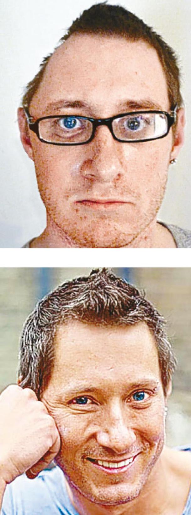英國32歲男子巴特(TimBarter),2009年因意外「削去」右邊腦袋(上圖),部份頭骨、眼窩和顴骨粉碎,醫生破天荒用他的胃腩脂肪和ソ片為他重塑半邊頭顱,手術完美得幾乎看不見傷痕。