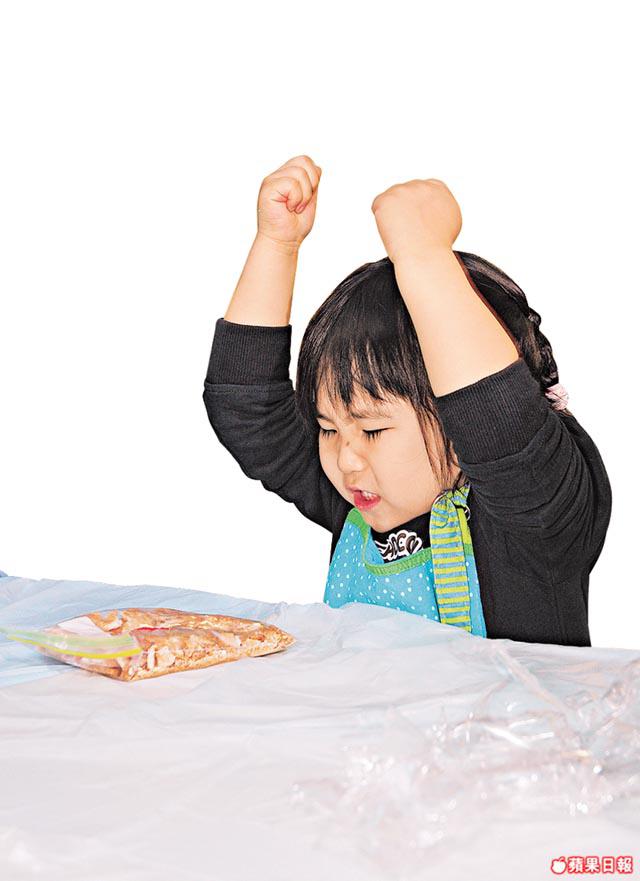 一進班房,Joanne先和小朋友打招呼,一班豆丁新來新豬肉,縱然有家長陪同,個個都怕怕羞羞。一開始,當然少不了「洗手、洗手、洗手」,手仔乾乾淨淨才開動,洗手後Joanne立即開估:「Todaywearemakingchocolatebiscuitballs.」(今天我們會做朱古力球。)一聽到朱古力三個字,小朋友已經為之雀躍,究竟一粒朱古力球怎樣變成的?