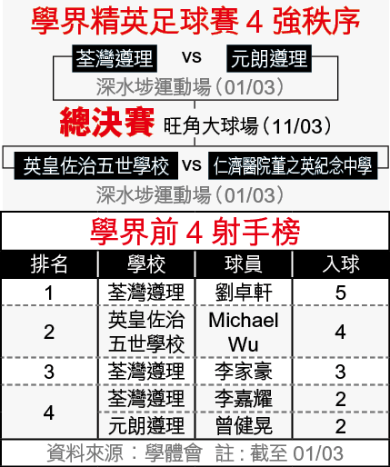 去年曾隨維拉青年軍學法一周的阿凱,在今午的學界4強戰,或因要備戰明晚對飛馬的港甲,未能正選對8強以8:0大炒長洲官立中學的英皇佐治五世學校;就讀中四的維拉凱賽前鼓勵隊友,揚言決賽會加倍努力回饋球隊。