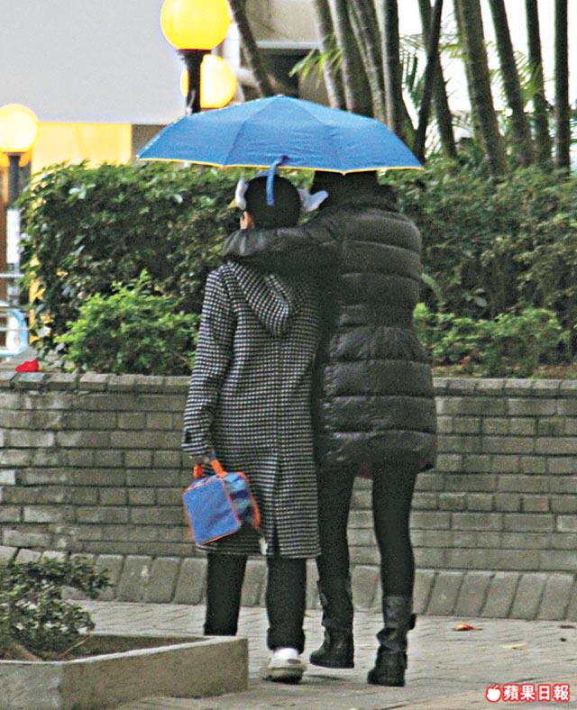 行到中途一度落微雨,洪欣第一時間打開雨傘以免浩鋒被雨淋,期間又用手揑囝囝面珠,表現肉緊。