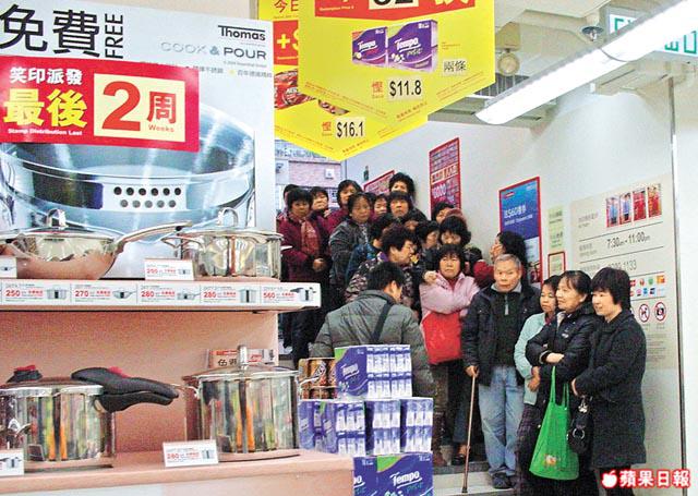 記者連日觀察,在水貨客的組織下,雖然奶粉有限,但來排隊的公公婆婆一次比一次多,不少人手中的印花亦一天比一天多,為了換到一個煲,他們心甘情願去當不要報酬的排隊黨。