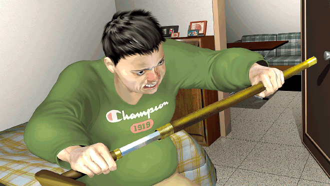 【本報訊】三名20歲男女捲入三角戀,最終釀成九刀血案!喜歡珍藏漫畫武器的20歲「刀劍癡」,昨凌晨突見同齡女友帶同新歡上門執拾東西,當場火遮眼刀劍出鞘,先拳毆女友,繼而執起蝴蝶刀將情敵狂捅九刀,慘被劏肚頸的新歡負傷逃走,刀劍癡再取枴杖劍殺出,欲置情敵死地時,幸警員及時趕至制止,疑兇畏罪衝回廚房舉刀自殺,終被制服擒獲,新歡性命垂危。