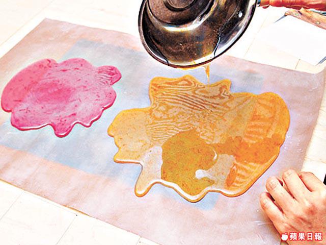 波板糖造型可愛,看起來已令小朋友流口水,自家製的糖用上天然水果香油,減少多餘的人工成份,做法原來亦極之簡單,而且在扭波板糖的過程中,更是不錯的親子活動。將2杯砂糖、1/4茶匙他他糖、半杯粟膠及半杯水加入鍋中,以中火煮至糖溶,轉大火,快速攪拌並煮至砂糖混合物至130℃成糖漿,離火。將糖漿分成兩份,分別加入3/4茶匙的天然草莓香油和橙味香油,拌勻待稍凉,分別倒在不沾布上,攤平。當糖漿攤凉至不燙手時,各自取一小份,各自搓成長條,再扭在一起,打成蛇餅,插上膠籤即可。做波板糖時要留意,糖膠必須攤凉至不燙手,而每次只切一小份來搓,否則糖膠便會變硬!