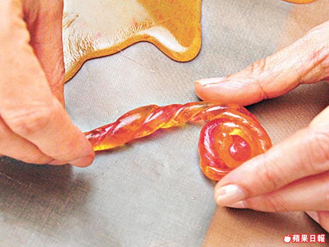 街上買的硬糖人做色素和香料較多,不如自行選擇以天然成份萃取的水果香油,令糖果基本成份變得較簡單。首先1克檸檬酸與5毫升水拌勻成檸檬水備用。把180毫升水、600克糖、4克鹽、180水麥芽加入鍋中,煮至140℃,然後依次序加入1茶匙的天然草莓味香油、3毫升的檸檬水,拌勻,離火,原鍋坐入冷水中降溫至略攤凉,倒入已掃油的糖模中,待凝固便可脫模。硬硬的草莓糖帶點酸酸的味道,味道夠fresh!