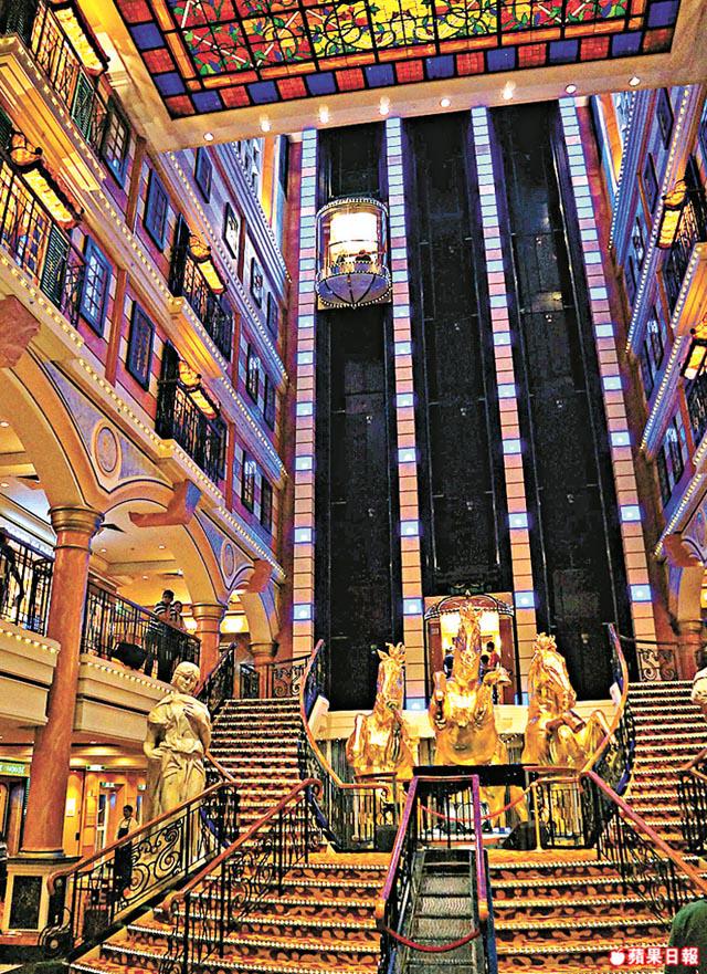 只花了21天翻新,就把這艘處女星號變得光亮,踏上郵輪先看到中央大堂三匹23K黃金駿馬,地毯也是全新鋪上,新簇地展開三日兩夜的郵輪假期。