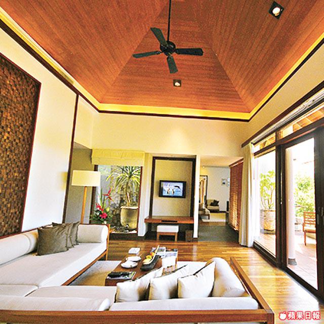 酒店大堂是開闊的荷花池接連大片草地,遠處的玻璃屋餐廳隱沒在小樹林裏,獨留幾頂尖頂小白屋。渡假村範圍達十英頃,棕梠樹中央是泳池,一切都那麼廣闊,彷彿只走在廣闊的草地或叢林花園,明明看到別的住客,這麼近卻又那麼遠,十歲以下小朋友不招待,所以四周靜靜的。